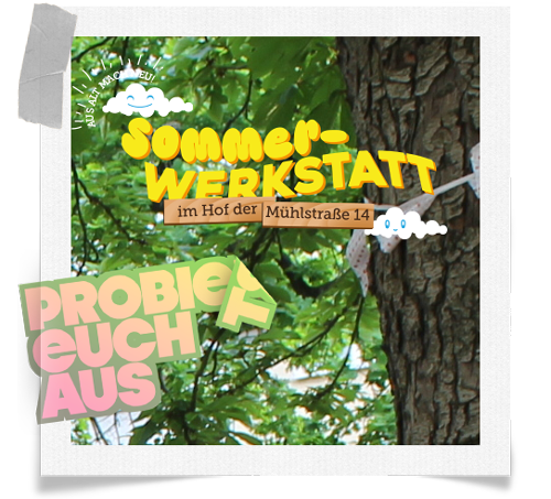 Wir laden euch in unsere Sommerwerkstatt in den Hof des MÜHLSTRASSE 14 e.V. ein. Gemeinsam mit euch entstehen selbstgestaltete Unikate aus vielfältigen Materialien. Dabei nutzen wir verschiedene Techniken und Werkzeuge und geben den unterschiedlichen Materialien ein neues Leben.
