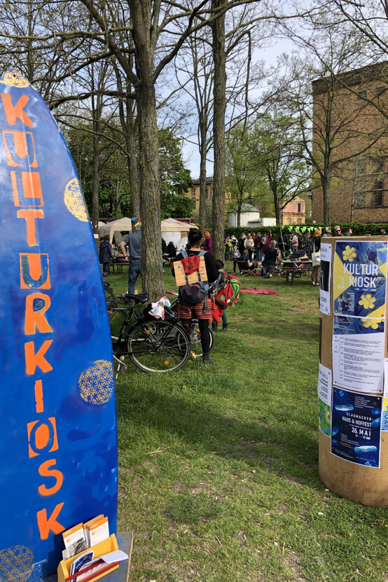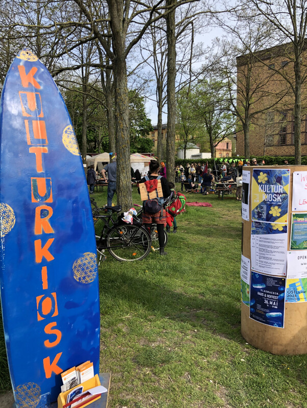 In den Monaten Mai bis September öffnet 14tägig von 16:00 - 21:00 Uhr öffnen wir die KioskTür und bespielen wir das bunte Trafohaus inmitten des Lene-Voigt-Parks im Leipziger Südosten. Ein kleiner Ruhepol in der Stadtnatur wird von uns gemeinsam mit Leipziger Akteur*innen, mit Initiativen, mit Nachbarn und Anwohner*innen, mit alt-eingesessenen oder neu-hinzugezogenen gestaltet und ermöglicht geplante Aktion im öffentlichen Raum. Mit Workshops und Begegnungen, mit Gesprächen und Aktionen möchten wir unser Miteinander mit Euch gemeinsam gestalten und lebenswerter machen. Wir vernetzen, mindern finanzielle Barrieren oder Sprachbarrieren und stricken Gedankenkonstrukte aus denen neue Ideen wachsen.